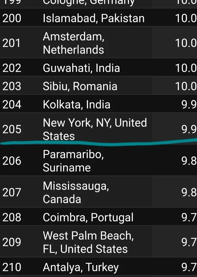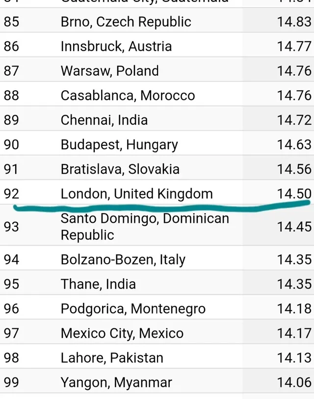 서울과 비슷한 지수를 띄는 나라들과 도시들을 보자.