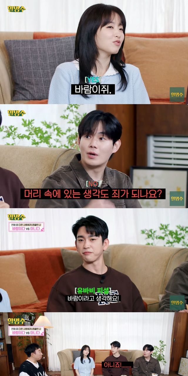 반면 류경수는 "머릿속에 있는 생각도 죄가 되냐"며 바람이 아니라고 주장했고, 박진영은 김고은과 호흡을 맞춘 '유미의 세포들'에서 본인이 맡았던 유바비의 상황임을 전하며 "바람이라고 생각한다"고 말했다.