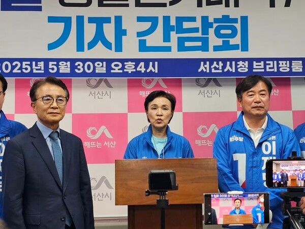 이날 기자간담회에는 서산 해미 출신 박종진 민주당 국방안보특보단장이 함께 해 이 후보 지지를 호소했다.