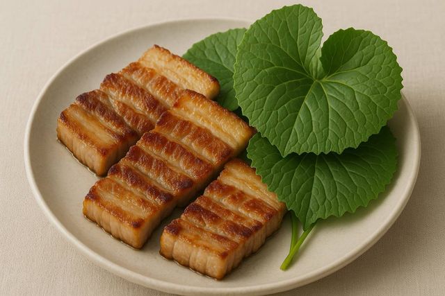 삼겹살은 기름지고 풍미가 강한 부위로, 구이 방식 특성상 느끼함이 강하게 남는 단점이 있다. 곰취는 그런 삼겹살의 느끼함을 상쾌하게 잡아주는 식재료로 주목받는다. 입안의 지방 잔여감을 깔끔하게 정리하면서도 고기의 맛을 덮지 않고 오히려 풍미를 상승시킨다.