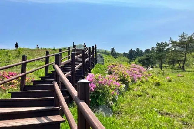 정상에서는 ‘사방댐’을 만나게 됩니다. 산불 진화용 헬기의 취수원이기도 한 이 인공호수는 주변의 침엽수와 철쭉이 어우러져 그림 같은 풍경을 선사합니다. 수면에 비치는 나무 그림자와 하늘은 마음을 차분히 감싸줍니다.