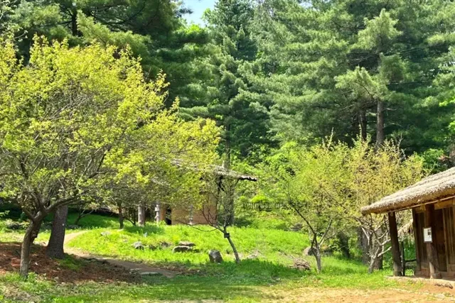 하산길에는 1960~70년대 축령산 일대에 존재했던 화전민 마을을 재현한 구간이 있어 흥미를 더합니다. 너와집, 귀틀집, 숯가마 등 당시의 생활을 엿볼 수 있는 이곳은 짧은 역사 산책길 역할을 합니다.