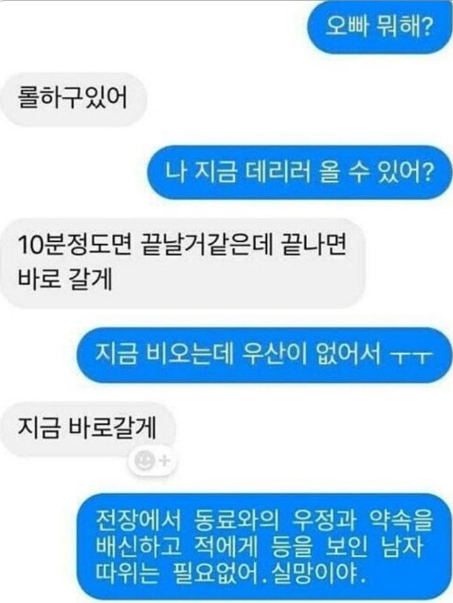 여사친과 대화하는 남사친 드립력