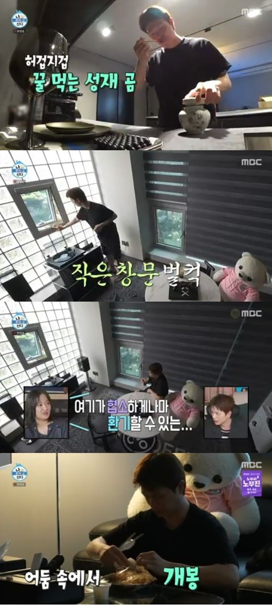 집에서 어둡게 지낸다는 육성재는 약을 먹기 위해 주방에 조명을 켜고 영양제, 젤리형 비타민, 토종꿀을 먹었다.