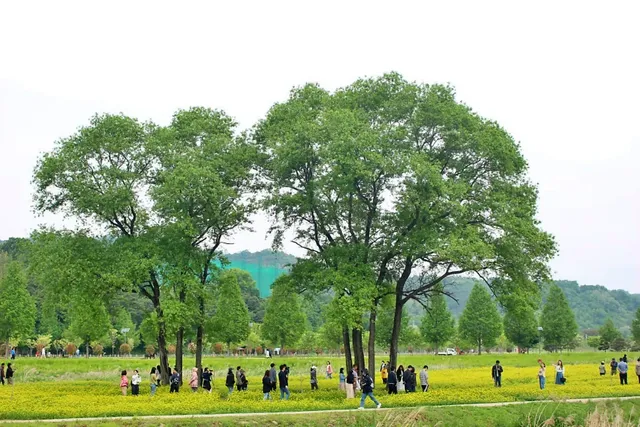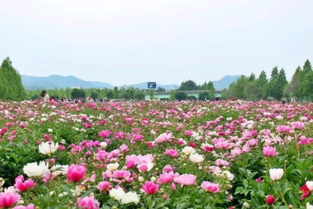 공원 내 편의시설도 잘 마련되어 있습니다. 주차장과 화장실, 쉼터, 포토존 등 다양한 시설이 준비되어 있어 가족, 연인들이 봄 나들이를 즐기기에 완벽한 장소입니다. 특히 분홍색 문 포토존은 인생샷을 남기기 좋은 장소로 인기를 끌고 있습니다. 작약꽃밭 뒤로 유채꽃밭도 함께 있어 두 가지 꽃을 동시에 감상할 수 있습니다.