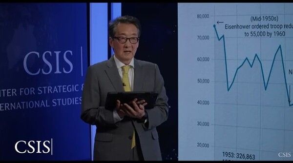 차 석좌는 1950년대부터 주한미군 역사를 살펴보면서 "한반도 주둔 병력을 감축하거나 철수한다는 개념은 한국에 새로운 일이 아니다"며 "그동안 꾸준하고 정기적으로 목격해온 것"이라고 말했다.