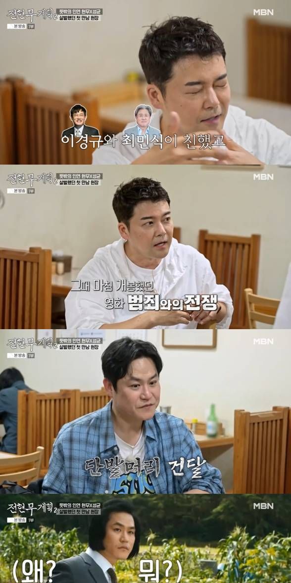전현무는 "내가 아나운서 마지막 해 일 때 '남자의 자격'을 할 때, 경규 형님이 최민식 형님이랑 친했다. 같은 학교여서"라며 인맥 연결고리를 언급했다.
