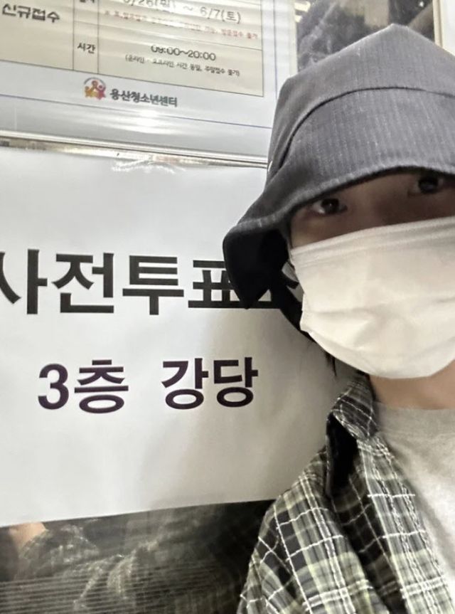 공개된 사진 속에는 투표소 앞에서 카메라를 바라보고 있는 아이유의 모습이 담겼다. 아이유는 무채색 모자와 티셔츠, 셔츠를 입고 있다.