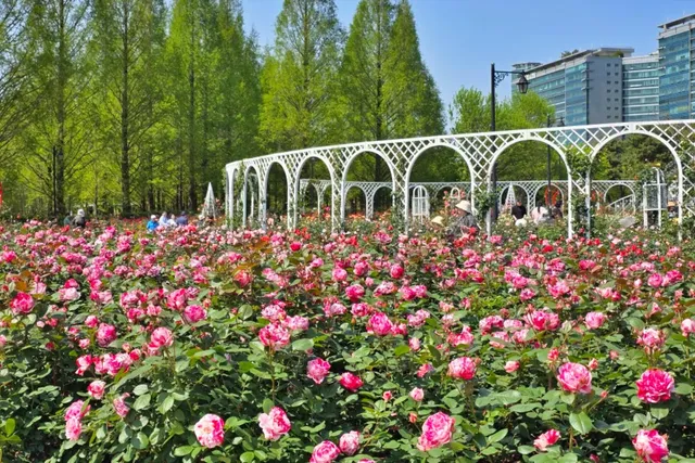 튤립 정원을 지나면 다양하게 장식된 장미원이 펼쳐집니다. 2만 4천 송이의 장미가 정원을 장식하며 풍부한 향기와 색을 제공합니다. 이곳에는 희귀 품종의 장미도 있어 다양한 감각을 자극합니다.