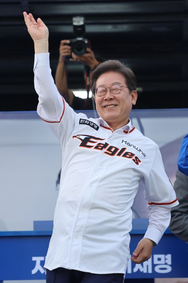 이 후보는 이날 오후 대전광역시 집중유세 내내 송 감독이 전해준 한화이글스 유니폼을 입고 있었다. 연설을 시작할 즈음 김용만 민주당 의원이 귓속말로 무언가 말하자 이 후보는 “옷 벗으라고 그러는데 제가 안 한다고 그랬다”며 “영구결번 21번 티를 주셨는데 21대 대통령 되라는 뜻 아니냐. 근데 이걸 왜 벗겠느냐”고 했다.