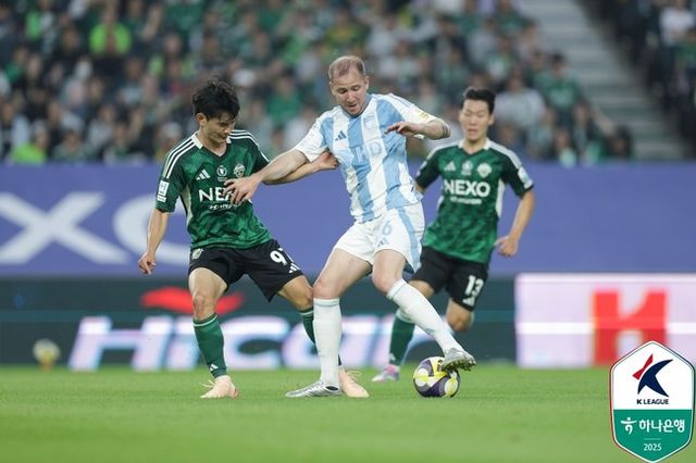 전북도 빠르게 승부를 원점으로 돌렸다. 전반 25분 송민규가 조현우 선방에 이은 세컨드볼을 밀어 넣으며 동점골을 터트렸다.