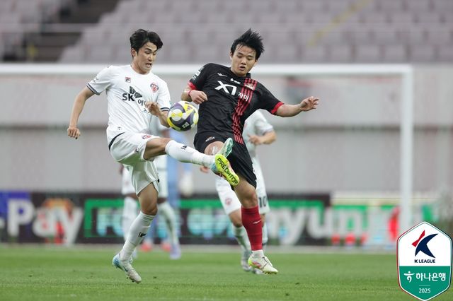 서울이 전반 7분 최준의 기습적인 중거리 슈팅으로 제주의 골문을 노렸다. 코너킥 상황에서 제주가 멀리 걷어낸 공을 최준이 잡아 오른발 중거리 슈팅으로 연결했다. 골대 구석을 향해 날아간 공을 김동준 골키퍼가 잘 막아내며 균형이 이어졌다.