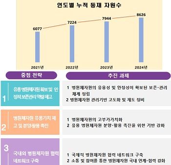 국가 병원체자원 보존·관리목록 자원은 2020년 약 3,000주에서 2024년 말 기준 8,626주로 188% 증가하며 대폭 확대됐다.
