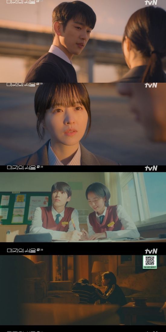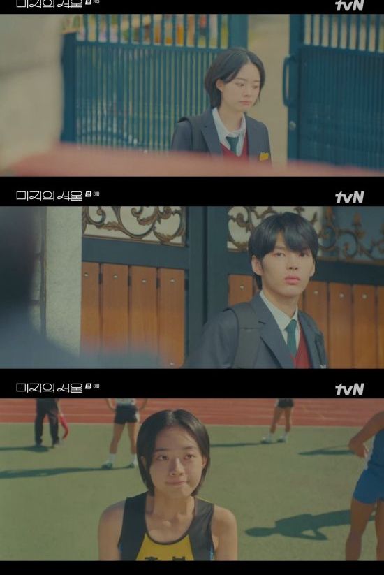 31일 방송된 tvN 새 토일드라마 '미지의 서울' 3회에서는 유미지(박보영 분)가 어린 시절 이호수(박진영)를 짝사랑했던 기억을 떠올리는 모습이 그려졌다.