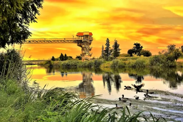해가 지면 다리가 황금빛 조명으로 물들어 시원한 강바람과 함께 걷기에 더없이 좋은 장소가 됩니다. 이 강변길은 특히 밤에 야경을 감상하기에 최적의 장소로 추천할 만합니다.