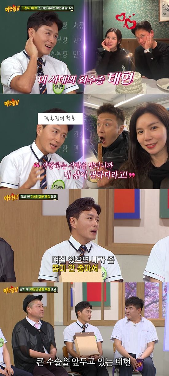 (엑스포츠뉴스 장인영 기자) 갑상선암 수술을 앞둔 배우 진태현이 '아는 형님' 멤버들에게 응원을 받았다.