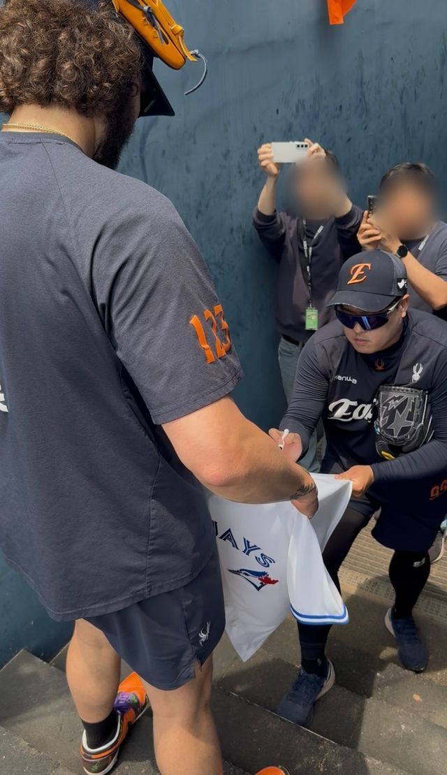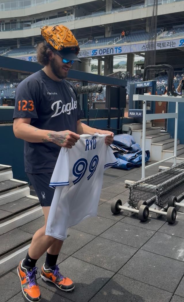 31일 한화 이글스와 NC 다이노스의 경기를 앞둔 창원NC파크, 코디 폰세가 훈련을 마치고 팬들에게 사인을 해주고 있던 류현진을 한국말로 크게 불렀다. 폰세의 손에는 'RYU'가 마킹이 된 토론토 블루제이스의 유니폼이 들려 있었다.