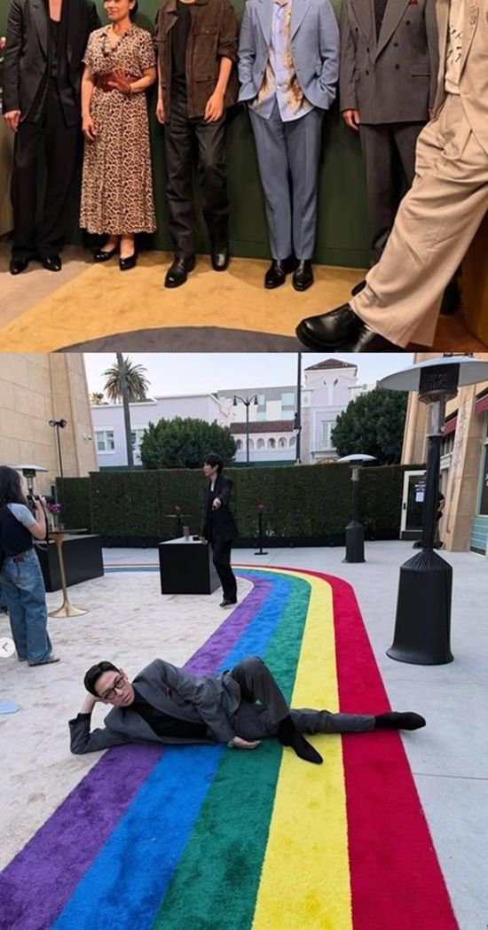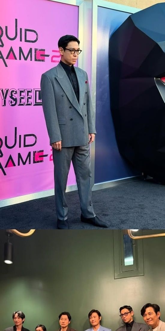 이날 최승현은 오는 27일 공개를 앞둔 '오징어 게임3'의 황동혁 감독과 이정재, 이병헌, 박성훈, 강애심과 함께 등장해 '오징어 게임3'을 열혈 홍보했다.
