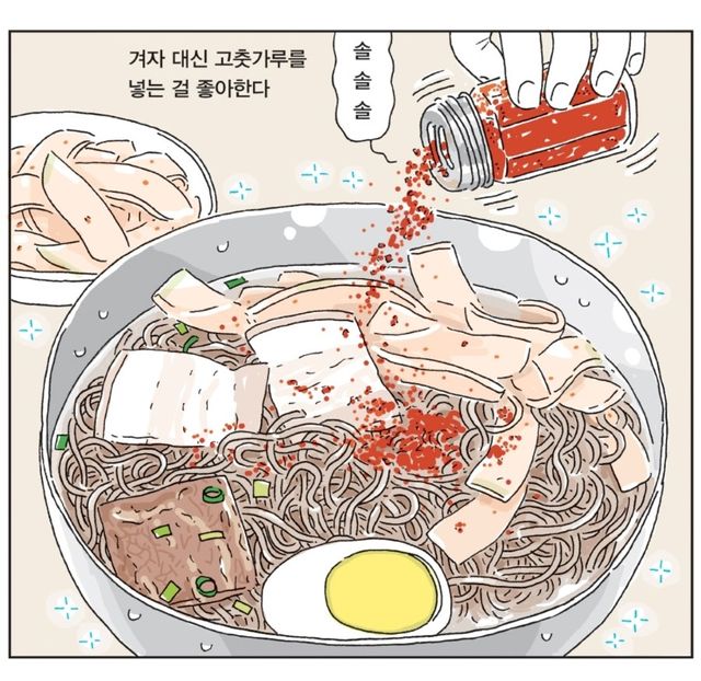 (평양 옥류관의 양념장 냉면을 예시로 삼으며)