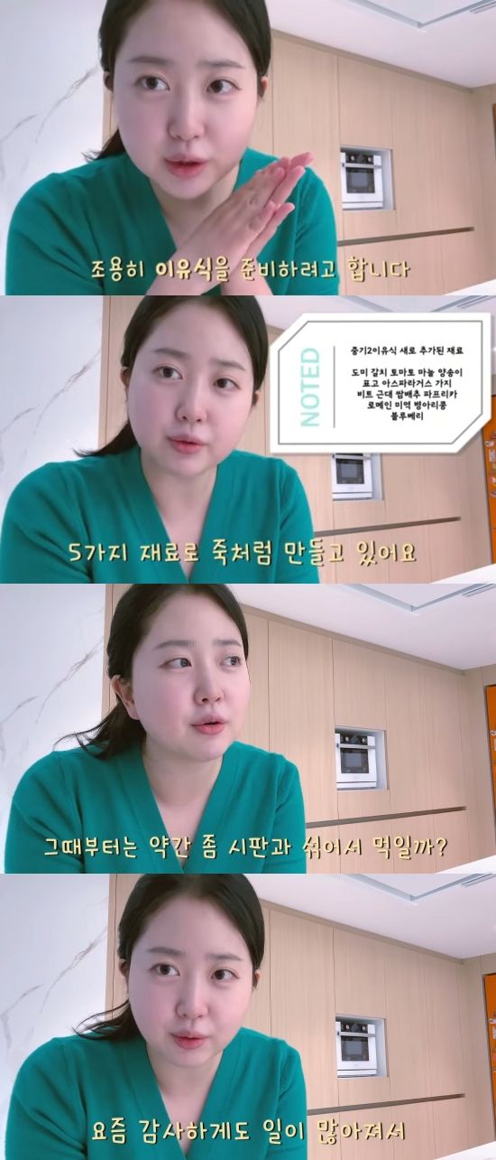 김다예는 "시판 이유식을 할까 고민이다. 약간 고민을 하고 있다. 이제 후기가 되면 3끼를 먹어야 되는데 그때부터는 시판과 섞어서 먹일까 생각도 하고 있다"고 말을 이었다.