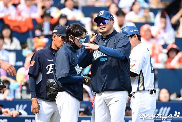 하필 고교 시절 포수였던 외야수 송승환은 이날 선발 이준혁을 등록하며 1군 엔트리에서 말소해야 했다. 이 감독은 "포수 출신인 승환이도 투수가 엔트리 들어와야 하면서 빠지게 됐다"면서 "권희동이 마스크 쓸 일이 없길 바라야 한다. 안그래도 힘들어 죽으려고 한다"고 쓴웃음을 지었다.