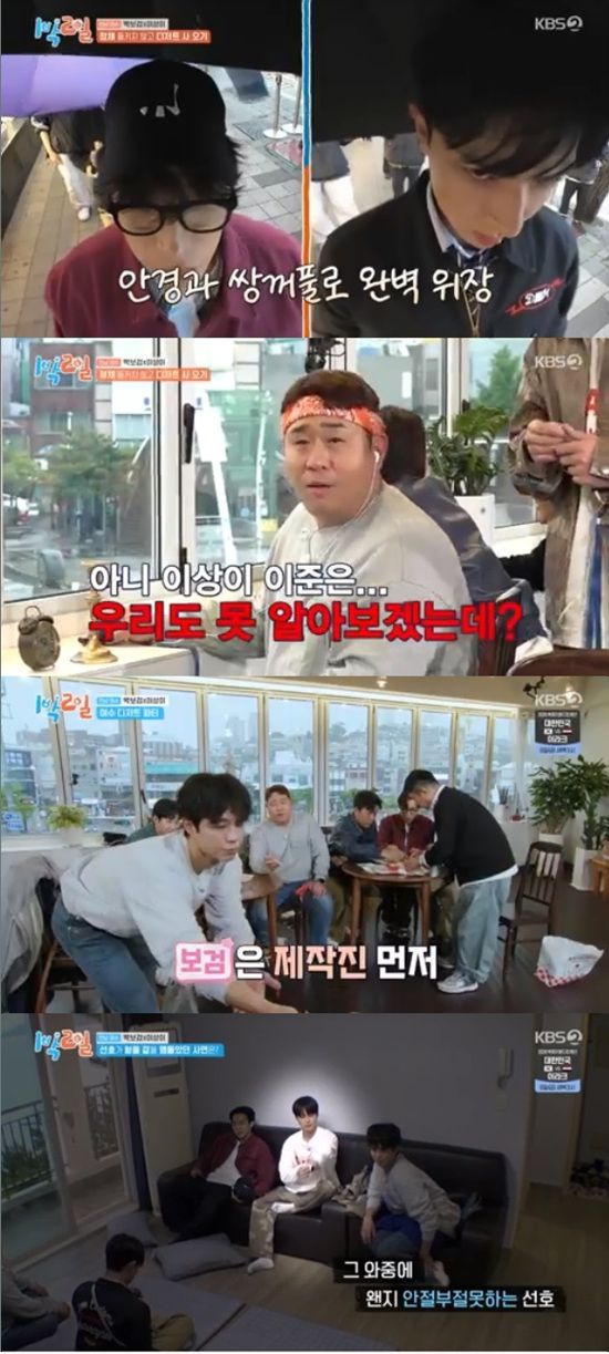 1일 방송된 KBS 2TV '1박 2일 시즌4'에서는 김종민, 문세윤, 조세호, 이준, 딘딘, 유선호가 박보검, 이상이와 여수 여행을 즐기는 모습이 전파를 탔다.