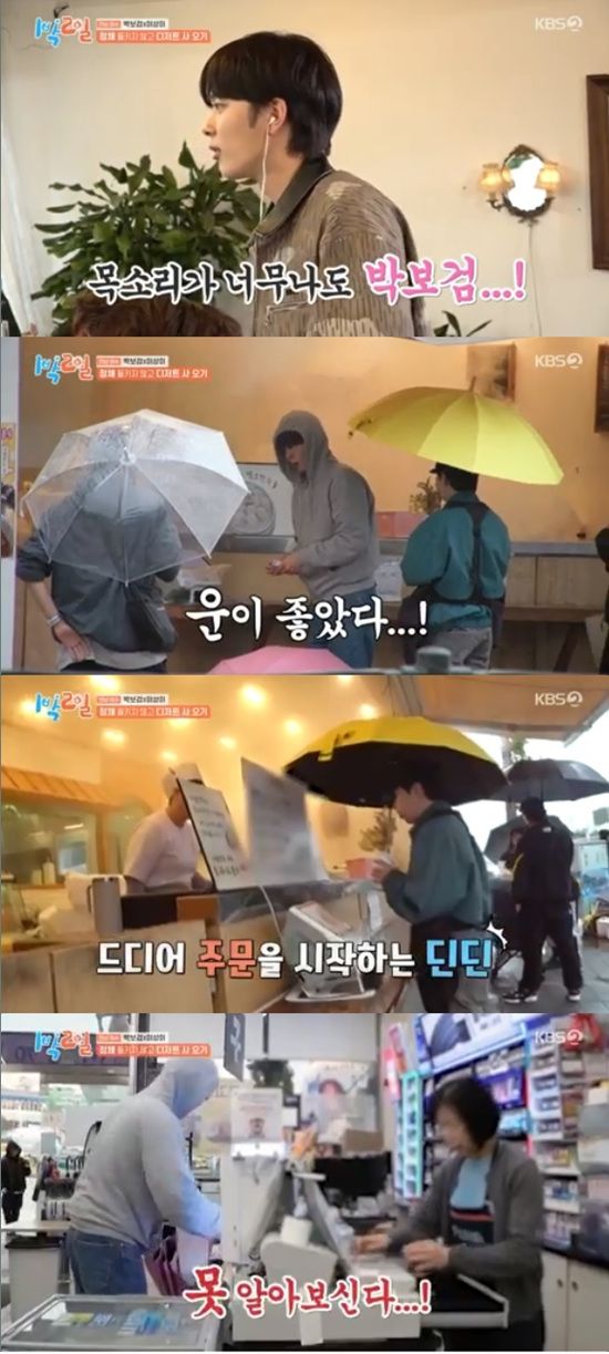 박보검은 현금 결제를 위해 사장님한테 말을 걸었다. 유선호는 "목소리가 너무 보검이 형이다"라고 걱정했지만 박보검을 정체를 들키지 않았다.