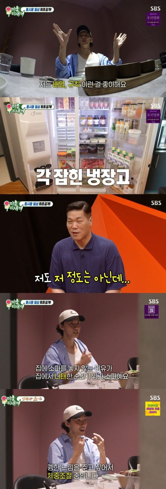 방송 최초로 한강뷰 아파트를 공개한 윤시윤은 높이에 따라 각 잡혀 정리된 냉장고로 서장훈과 신동엽을 놀라게 했다. 이뿐만 아니라 화장실 휴지까지 호텔처럼 각이 잡혀 있어 신동엽은 "역대급"이라고 감탄했다.