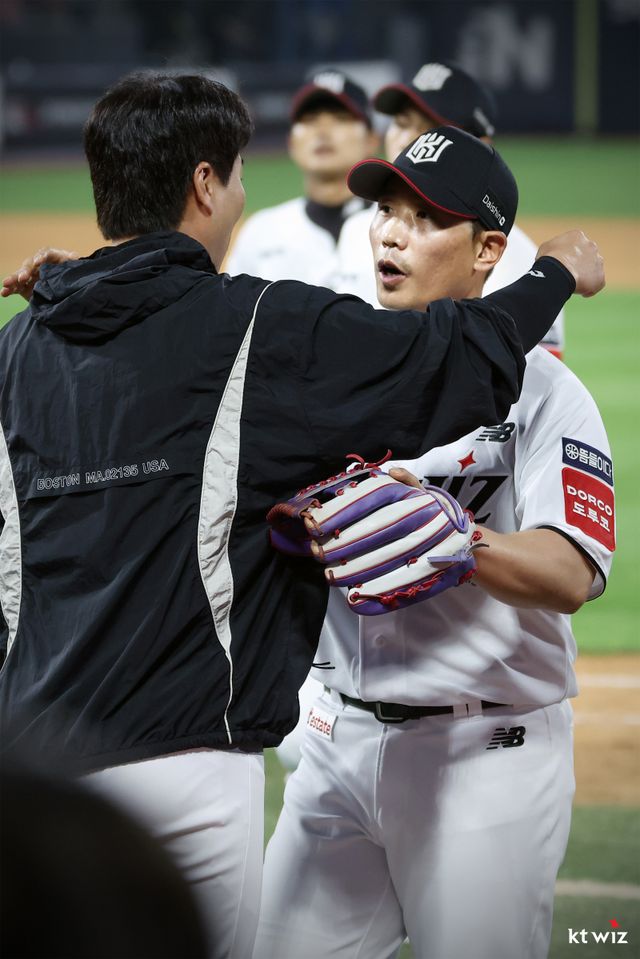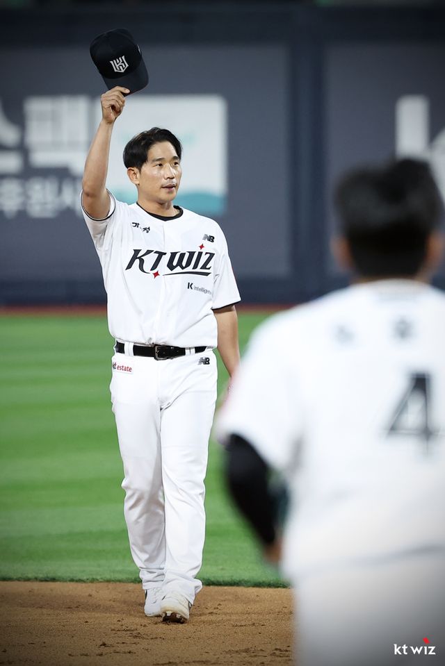이미 지난해를 끝으로 은퇴를 선언, KT의 코치로 새 야구 인생을 시작한 박경수 코치는 이날 공식 은퇴식을 치렀다. KT 구단의 요청에 따라 특별 엔트리에 등록된 박경수 코치는 경기 후반 교체 투입돼 그라운드까지 밟았다. 지난 2024년 4월 2일 수원 KIA전 이후 425일 만의 출전, 박경수 코치의 뜻깊은 은퇴식이 완성되는 순간이었다.