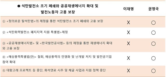 ④ 김문수·이준석 '핵발전', 이재명 '민영화', 권영국 '공공화'