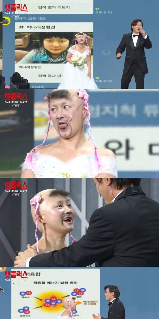 채팅방에 관객들은 "박나래 성형 전" 해시태그를 올렸고, 이를 본 박나래는 "내 뼈가 강남역에 12개가 묻혔어"라고 말해 폭소를 자아냈다.