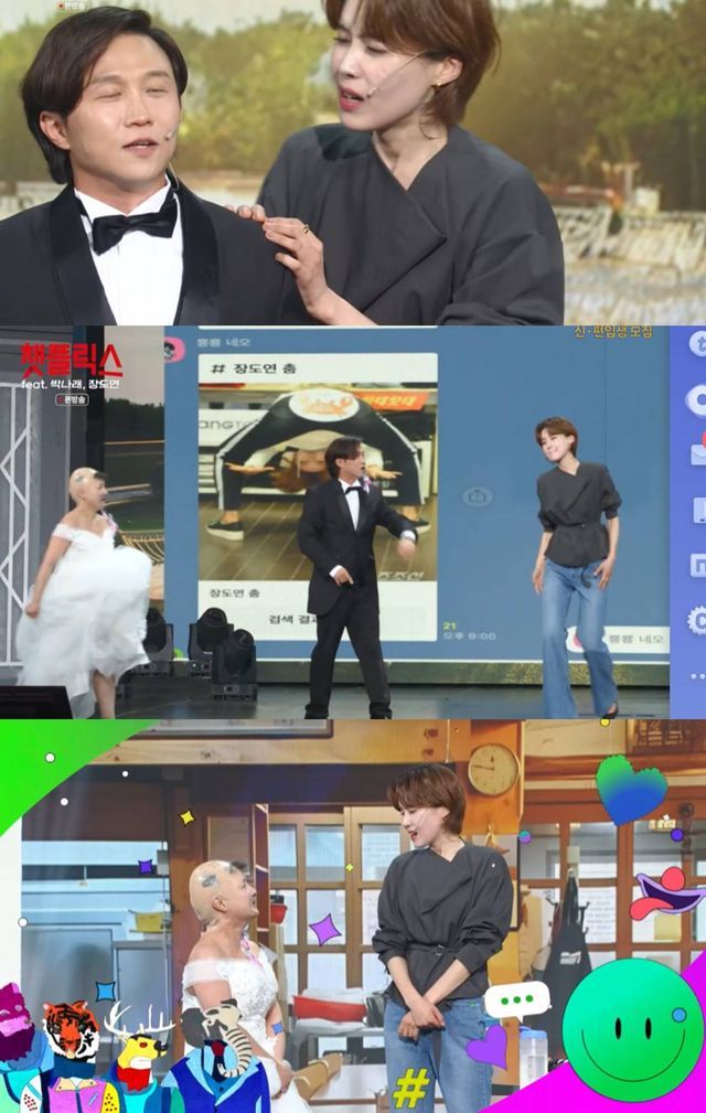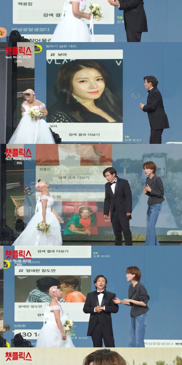 이때 장도연이 등장해 "이 결혼은 무효야"라고 주장, 임신을 했다며 "애 아빠가 누구냐"라고 물었다. 이에 채팅창에는 "이동욱-장도연, 장도연-손석구"가 올라왔고, 장도연은 "미안해요 고소하지 말아요"라고 말했다. 박나래 또한 임신했다고 하자, 채팅창에는 "상상임신"이라고 올라왔다.