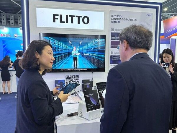 플리토는 행사 부스에서 ▲AI 동시통역 솔루션 '라이브 트랜스레이션' ▲다자간 대화형 AI 통역 솔루션 '챗 트랜스레이션' 등을 통해 다양한 AI 통번역 기술을 선보였다. 방문객들은 일대일 대화부터 다자간 대화까지 다양한 비즈니스 환경에서 정확한 AI 번역을 제공하는 플리토의 기술력을 직접 체험하는 시간을 가졌다.