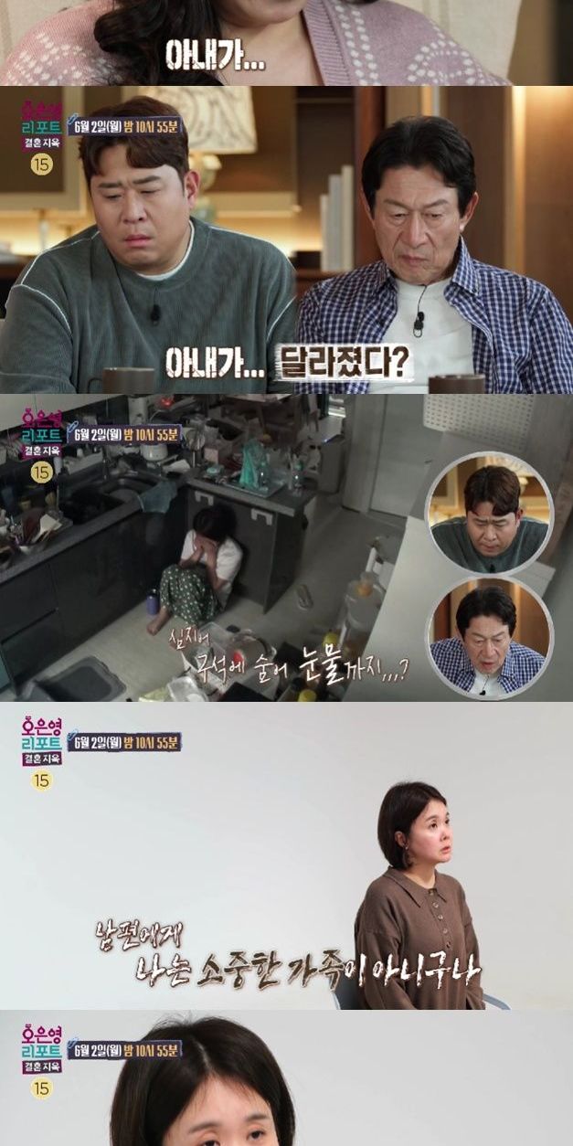 이어지는 영상에서 오전 내내 무기력하게 누워있던 아내는 식사도 거른 채 빈속으로 주방 바닥에 앉아 멍하니 술을 마시기 시작해 지켜보던 오은영 박사를 충격에 빠뜨린다. 혼잣말을 하며 자책하던 아내는 갑자기 오열하기 시작한다.