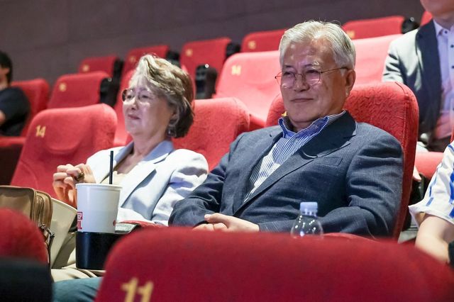 문재인 전 대통령 부부가 지난달 31일 부산에서 열린 영화 '바다호랑이' 상영회에 참석했다고 배급사 영화로운형제가 2일 밝혔다.