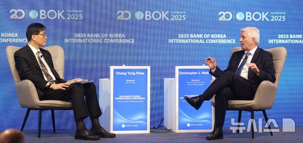이 총재는 2일 서울 중구 한은 별관 컨퍼런스홀에서 열린 '2025년 BOK 국제컨퍼런스' 에서 크리스토퍼 월러 미 연방준비제도 이사와의 대담에서 이같이 밝혔다. 이번 행사는 이달 3일까지 '경제 구조 변화와 통화정책' 주제로 열렸다.