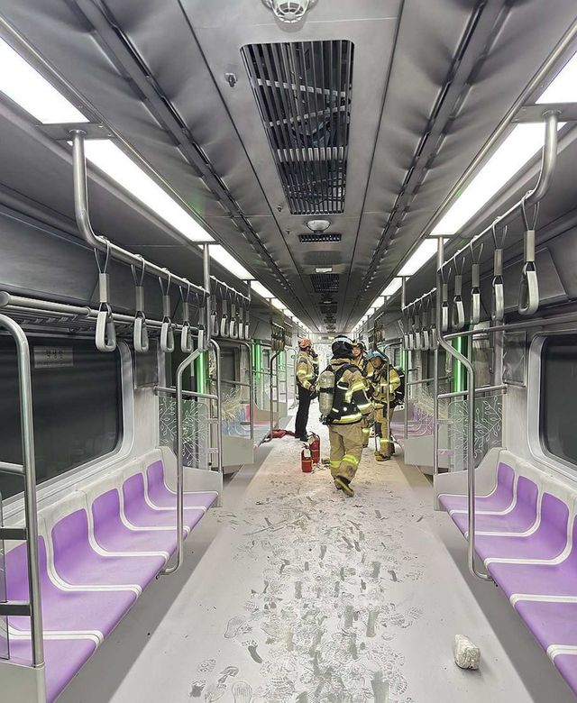 지난달 31일 서울지하철 5호선 열차 안에서 방화로 인해 승객들이 지하 터널을 통해 대피하는 사건이 발생했다. 사진은 서울지하철 5호선 객차 내부의 모습. / 영등포소방서 제공