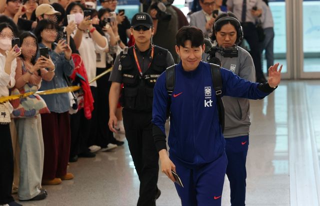 한국 축구 국가대표팀 주장 손흥민 선수가 2일 이라크전 원정경기를 하기 위해 인천국제공항을 통해 출국하고 있다. / 뉴스1