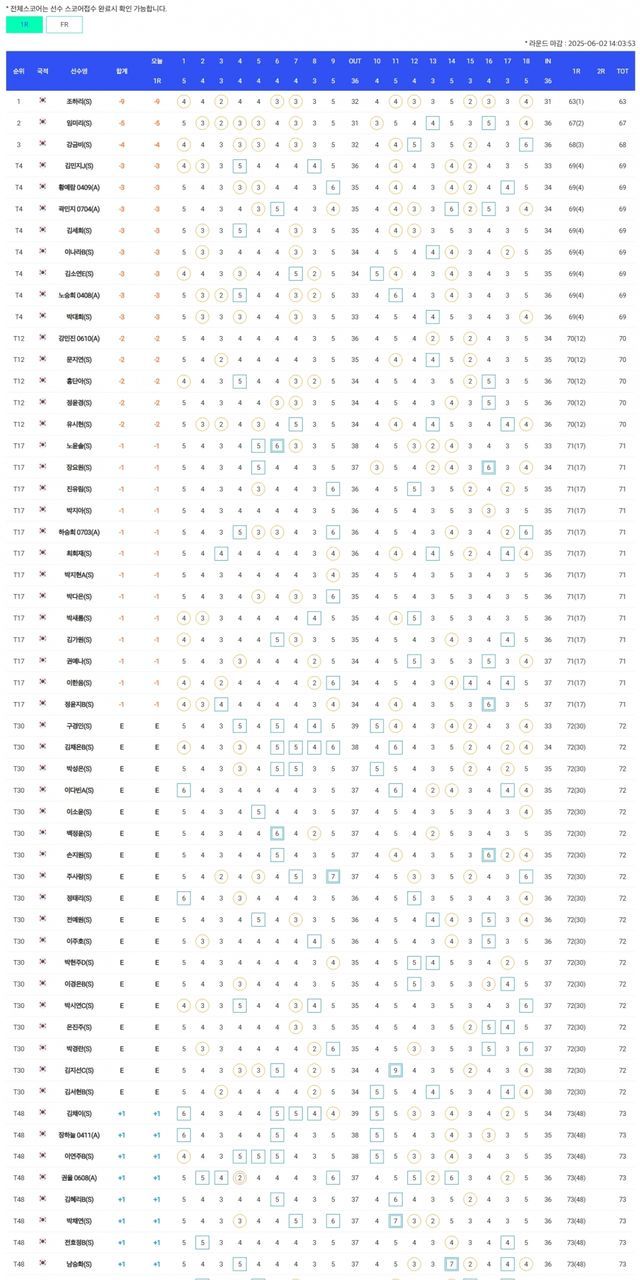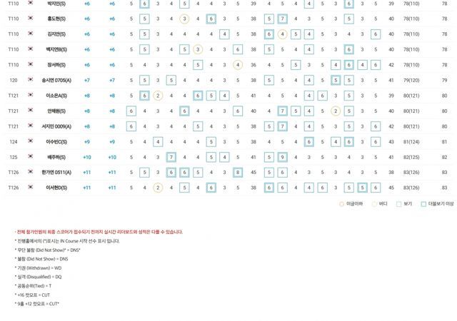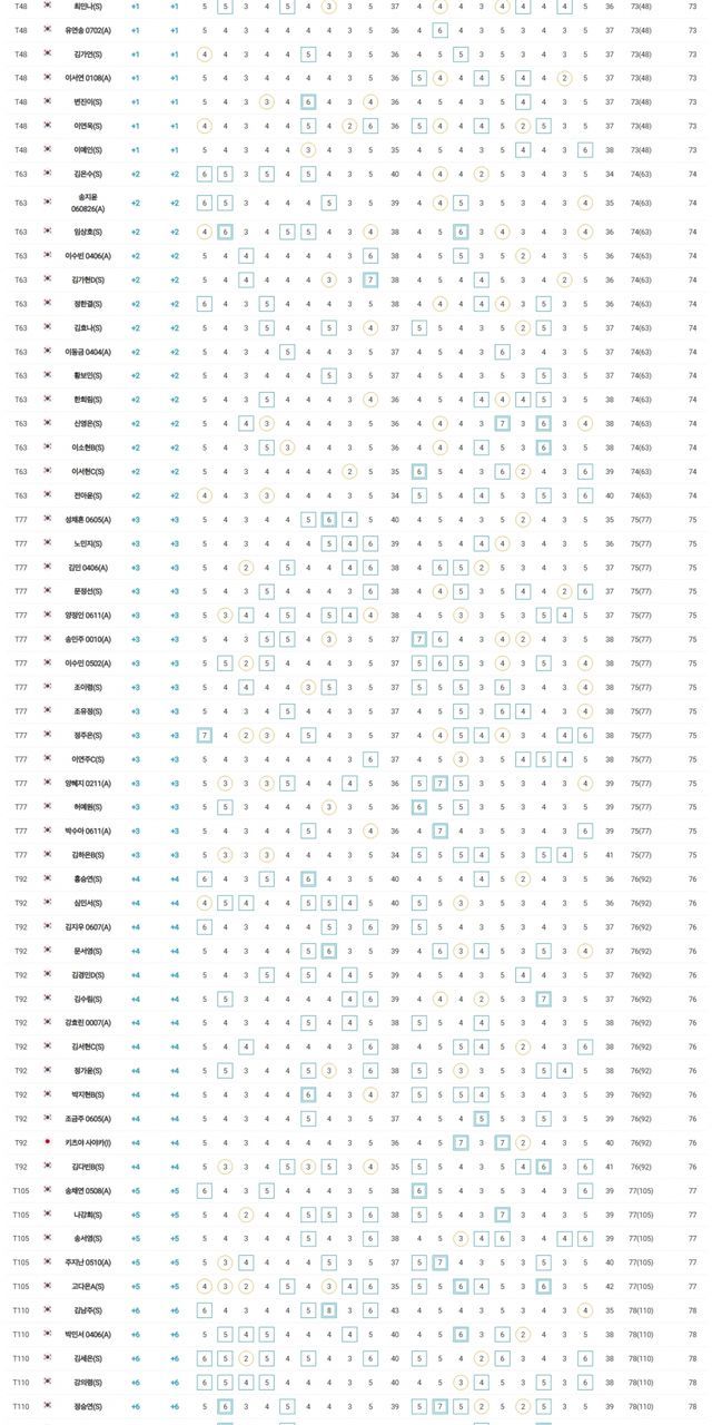 ▲다산베아채 골프앤리조트 점프투어 7차전 1라운드 순위(a아마추어)