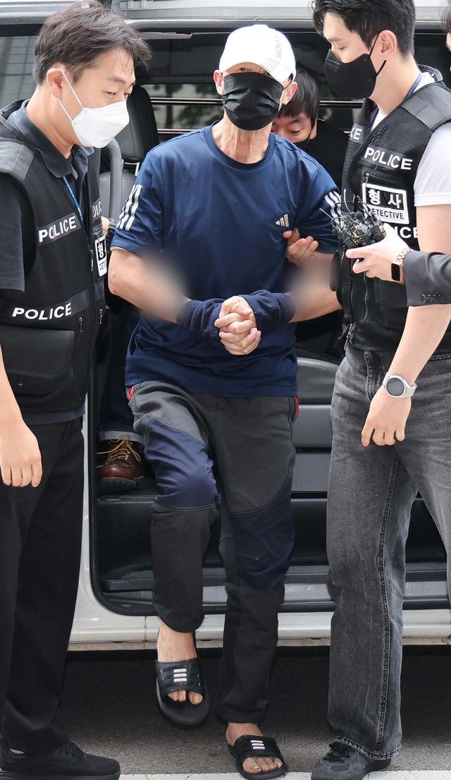 원 씨는 이날 오전 10시 6분쯤 영장실질심사 출석을 위해 흰색 모자에 남색 티셔츠를 입고 포승줄에 묶인 채 남부지법에 출석했다. 서울 양천구 서울남부지법에서 열린 심사에 출석한 원 씨는 법정으로 향하는 모습이 공개됐다.