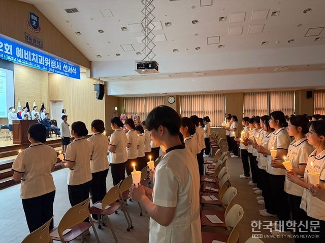 예비치과위생사 선서식은 치위생학과 2학년 학생들이 본격적 치과 현장실습에 앞서 전문가로서의 책임감과 윤리의식을 다짐하는 뜻깊은 행사이다. 2학년 학생 140명은 이날 촛불 의식과 예비치과위생사 핀 수여를 통해 국민 구강건강 증진에 헌신할 것을 선서했다.