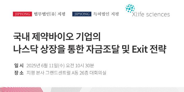 이번 MOU는 국내 제약바이오 업계의 글로벌 진출을 지원하기 위한 것으로, 지평은 엑스라이프 사이언스와의 공동 세미나를 통해 국내 제약바이오 기업과 해당 기업들에 투자한 VC들의 나스닥 상장을 통한 자금조달 및 투자회수(Exit) 전략을 공유한다는 계획이다.