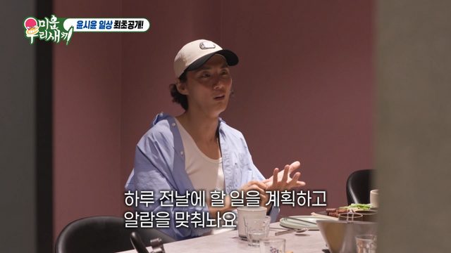 과연 윤시윤의 ‘칼각’ 일상은 어느 정도였을까요? 우선 분 단위로 시간을 쪼개 쓸 수 있도록 한 '무한 알람'이 눈에 들어 옵니다. 기상 3분 후 알람이 울리자 그는 영양제를 챙겨 먹고, 이어 4분 후에 다시 알람이 울리자 발성 연습을 시작했죠. 다음 알람이 울리기 전에 급하게 밥을 먹는 모습에 패널들은 “저렇게까지 해야하나”라고 탄식해 웃음을 줬죠. 다음 알람까지 남은 시간은 불과 20분이라 지켜보던 사람들이 더 다급해질 정도였습니다. 이에 윤시윤은 “한 달 플랜과 일주일 플랜은 기본, 하루 전날 할 일을 계획하고 알람을 맞춰 놓는다”라고 했고요. 그 뿐 아닙니다. 냉장고에는 모든 식재료들이 입출 날짜가 붙은 똑같은 용기에 분류 및 정돈돼 있었고, 옷장에는 색깔별로 정렬된 셔츠들이 각 간격까지 일정하게 맞춰져 있었죠. 심지어 윤시윤의 어머니는 아들이 깨끗하게 정리해 둔 화장실을 더럽힐까 봐 그의 집에 올 때면 지하철 화장실을 이용한다고까지 했죠. 그럼에도 윤시윤은 “저는 엄청 게으른 사람이라 정해 놓지 않으면 안된다"라며 "제가 나태해지는 게 너무 무섭다”라고 완벽주의적 면모를 뽐냈어요. 참고로 그의 MBTI는 ENFJ라고 합니다.