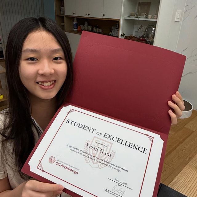 해당 상장은 예체능 특화 국제학교인 서울 스칼라스 인터내셔널 아트&디자인(SSI Art & Design)에서 수여한 것으로, 예술 양은 모범적인 태도와 학업 성취를 인정받았다.