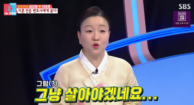 2일 방송된 SBS ‘동상이몽 시즌2-너는 내 운명’에서는 ‘이모카세’ 김미령과 남편 박민철이 이혼 전문 변호사 박민철에게 재산 분할에 대해 물었다.