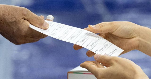 제21대 대통령 선거일인 3일 서울 영등포구 여의도 윤중중학교에 마련된 투표소를 찾은 시민이 투표용지를 받고 있다 / 뉴스1