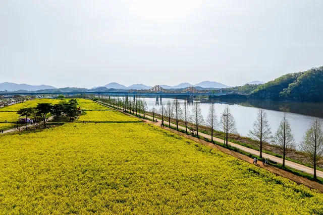 강변을 따라 잘 조성된 길에서는 물과 꽃이 어우러지는 독특한 분위기를 느낄 수 있습니다. 상쾌한 공기를 마시며 아침을 맞이하고, 저녁노을과 함께 유채밭을 물들이는 황홀한 장면도 경험할 수 있습니다. 사진 촬영에 적합한 시간대는 햇살이 부드러운 이른 저녁입니다.