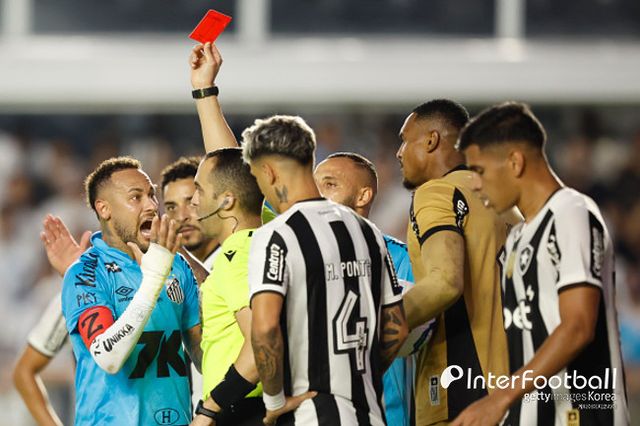 [인터풋볼] 주대은 기자 = 네이마르 주니오르가 득점 찬스에서 명백한 핸드볼 반칙을 범하며 경고 누적으로 퇴장당했다.
