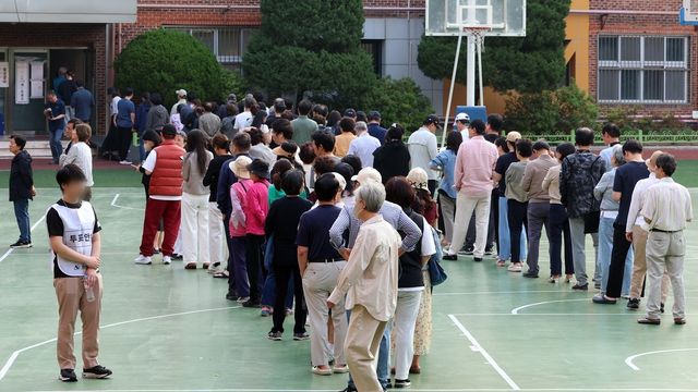 제21대 대통령선거일인 3일 오전 서울 서초구 서초4동 제3투표소가 설치된 원명초등학교에서 주민들이 길게 줄서서 투표를 기다리고 있다. / 뉴스1