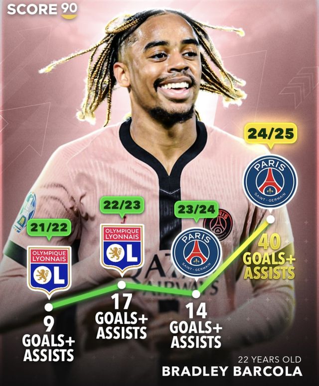 전반기에 가장 빛났던 바르콜라도 공식전에서 40개의 공격포인트를 수확했다. 그는 리그 34경기에서 14골 11도움, UCL 17경기에서 3골 4도움, 쿠프 드 프랑스(프랑스컵) 6경기에서 4골 4도움을 기록했다. 모든 대회에서 비교적 기복 없이 활약했다.